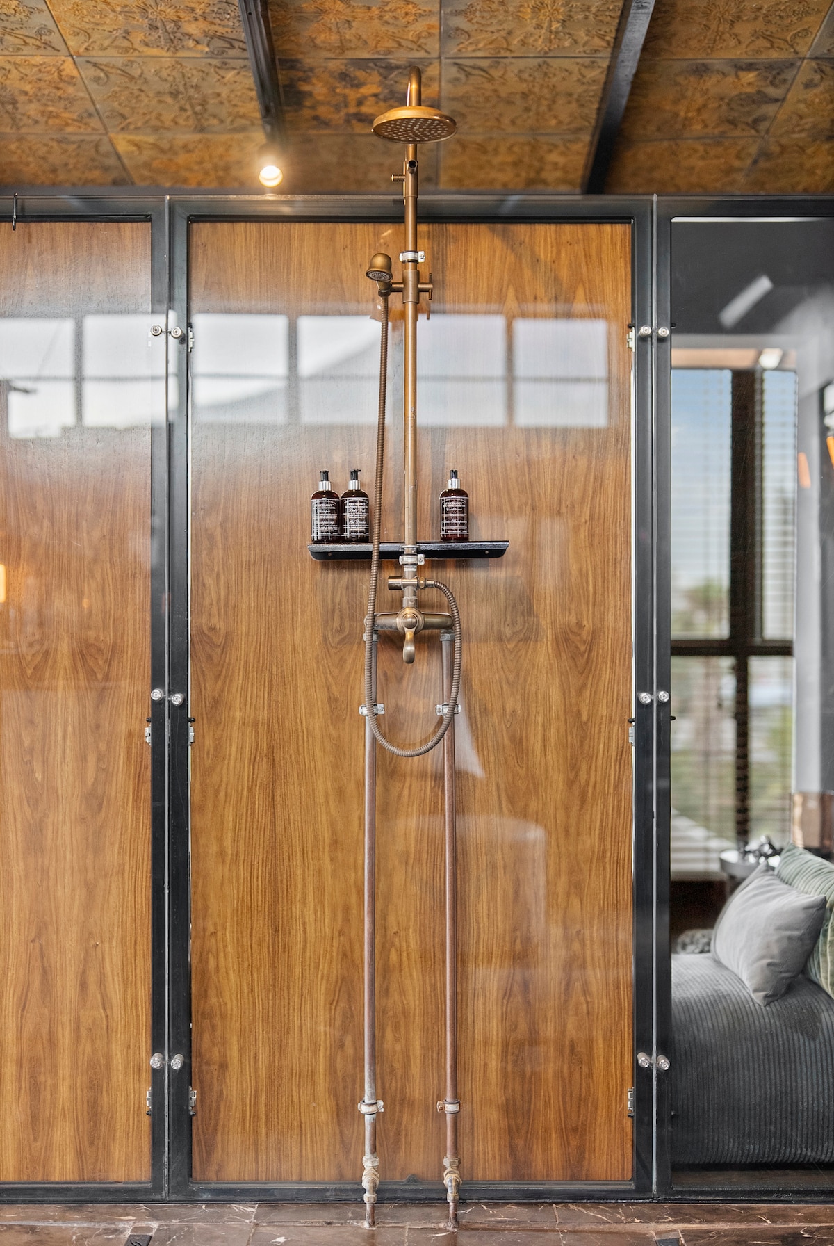 The apartment is completely secluded atop an industrial building called “Dunkley House”, near Dunkley Square, with Roxy’s Bar and Maria’s authentic Greek restaurant—right around the corner.