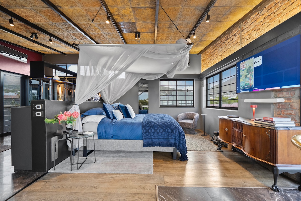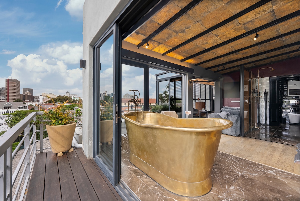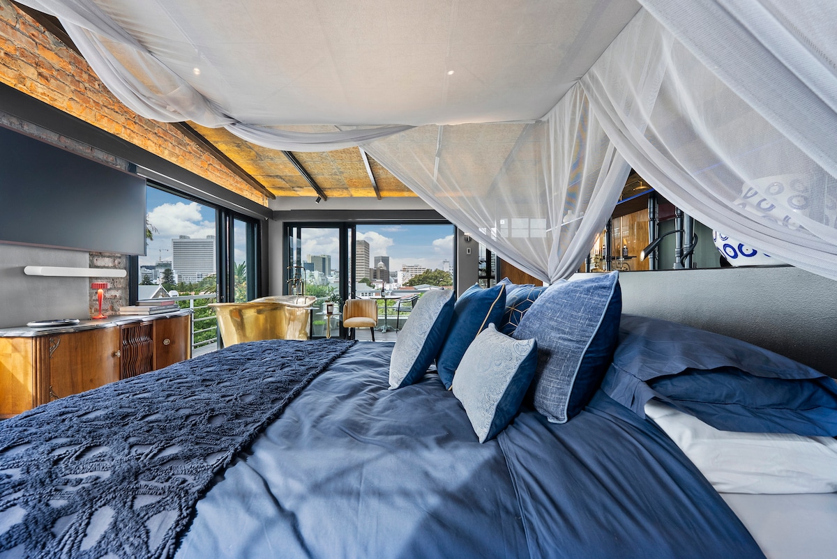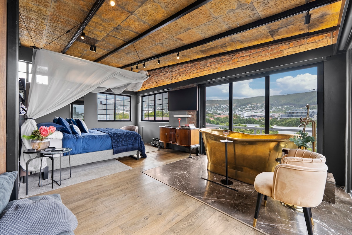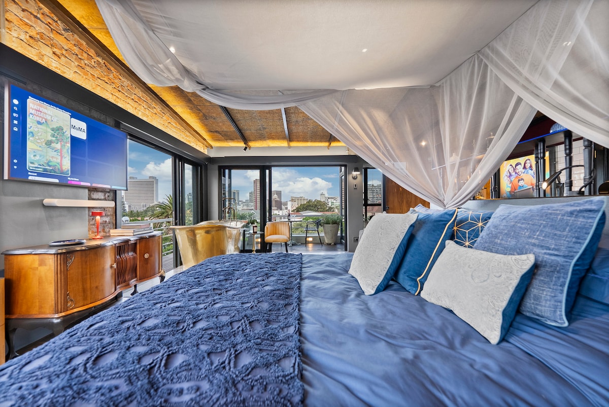 A magical home for exploring Cape Town. This centrally located penthouse is the perfect base for an unforgettable trip; fully furnished with all the comforts you could wish for – an antique bath, XL King-size bed, automated blinds, 55inch Smart TV with Netflix, a fully equipped kitchen, bathroom and wardrobes. Spectacular 270 degrees views of Table Mountain, Lions Head, Signal Hill, Company’s Gardens and the idyllic City skyline. From sunset to sunrise you will be spoilt with movie backdrops.